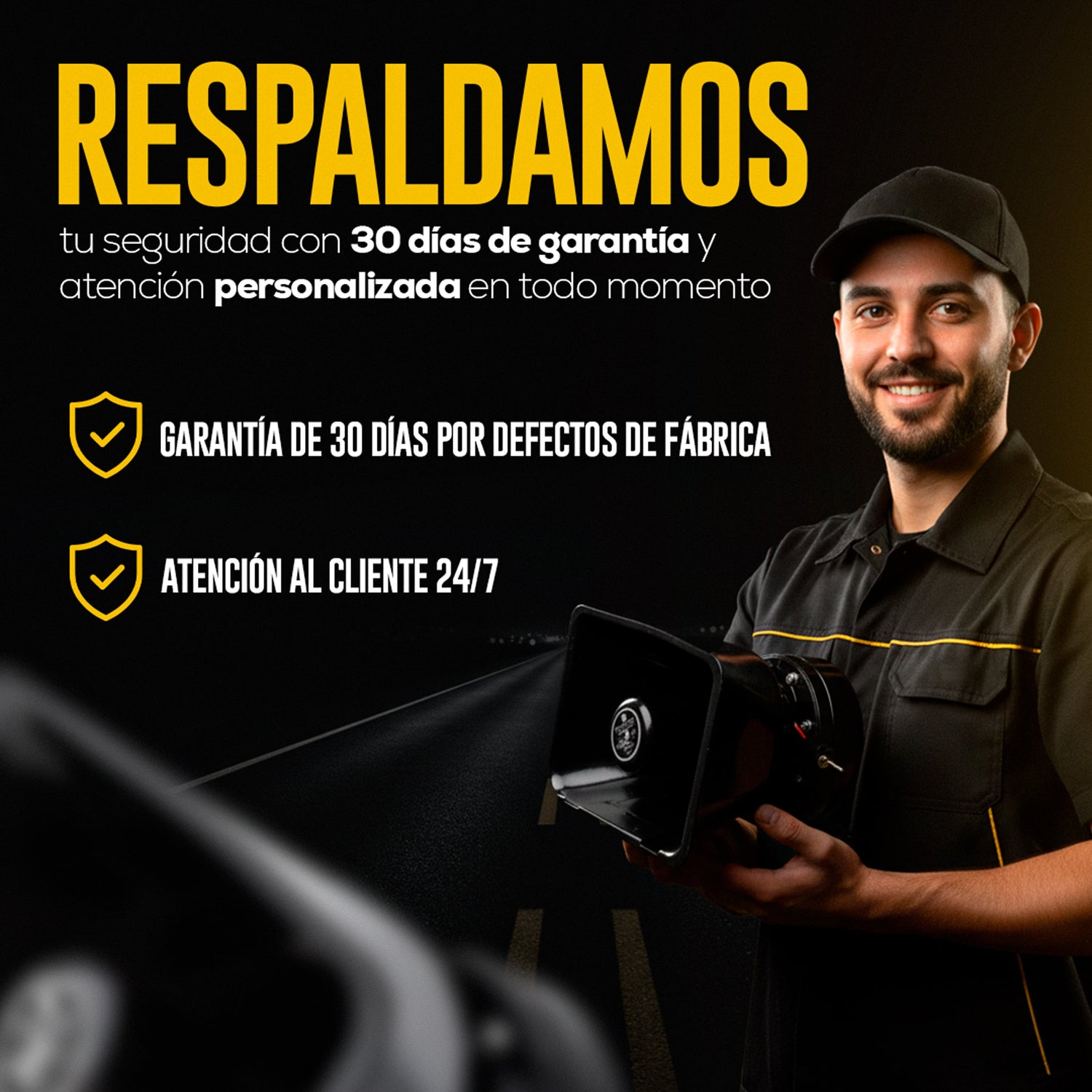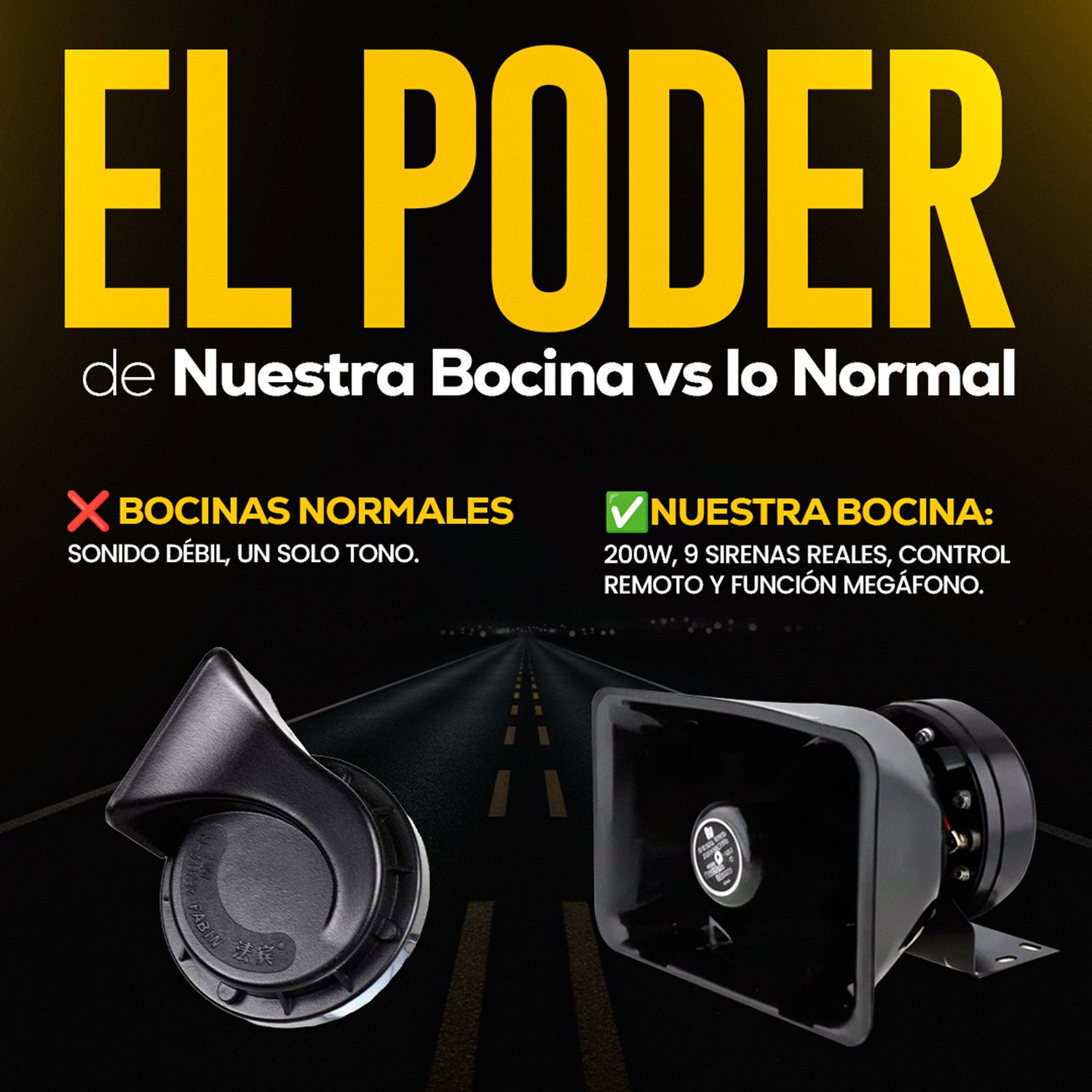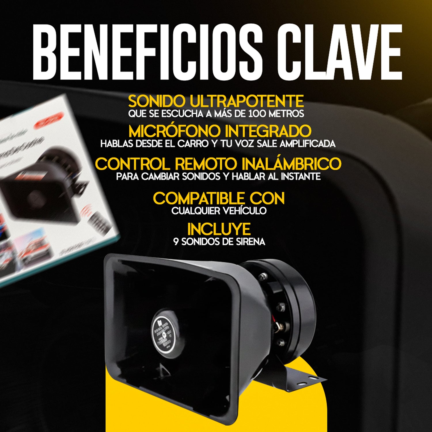 Por eso te ofrecemos un sistema de alerta de 200W con micrófono, megáfono integrado y control remoto: la misma fuerza y confiabilidad de marcas premium, pero a un precio justo y directo de fábrica.