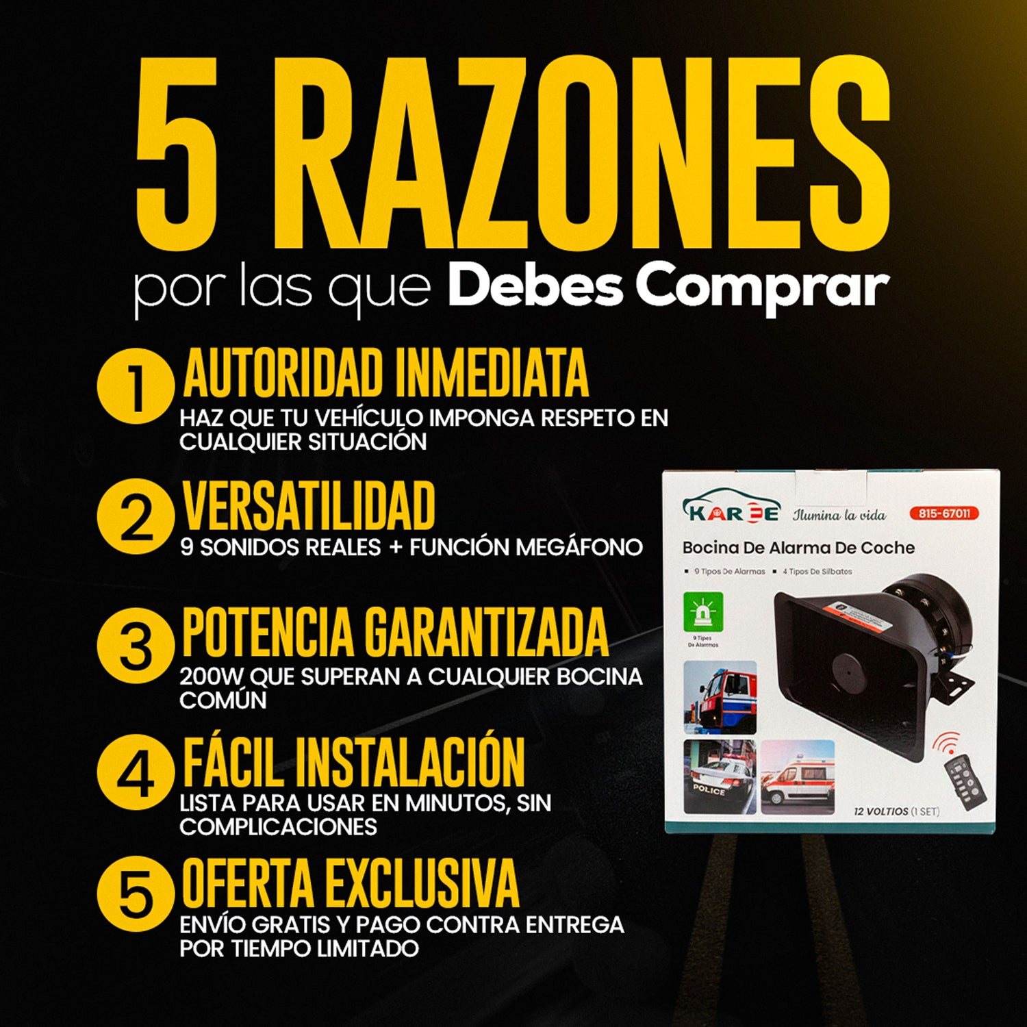 🚗 Bocina de Alta Potencia 200W KAREE™: Sonido fuerte, claro y seguro.