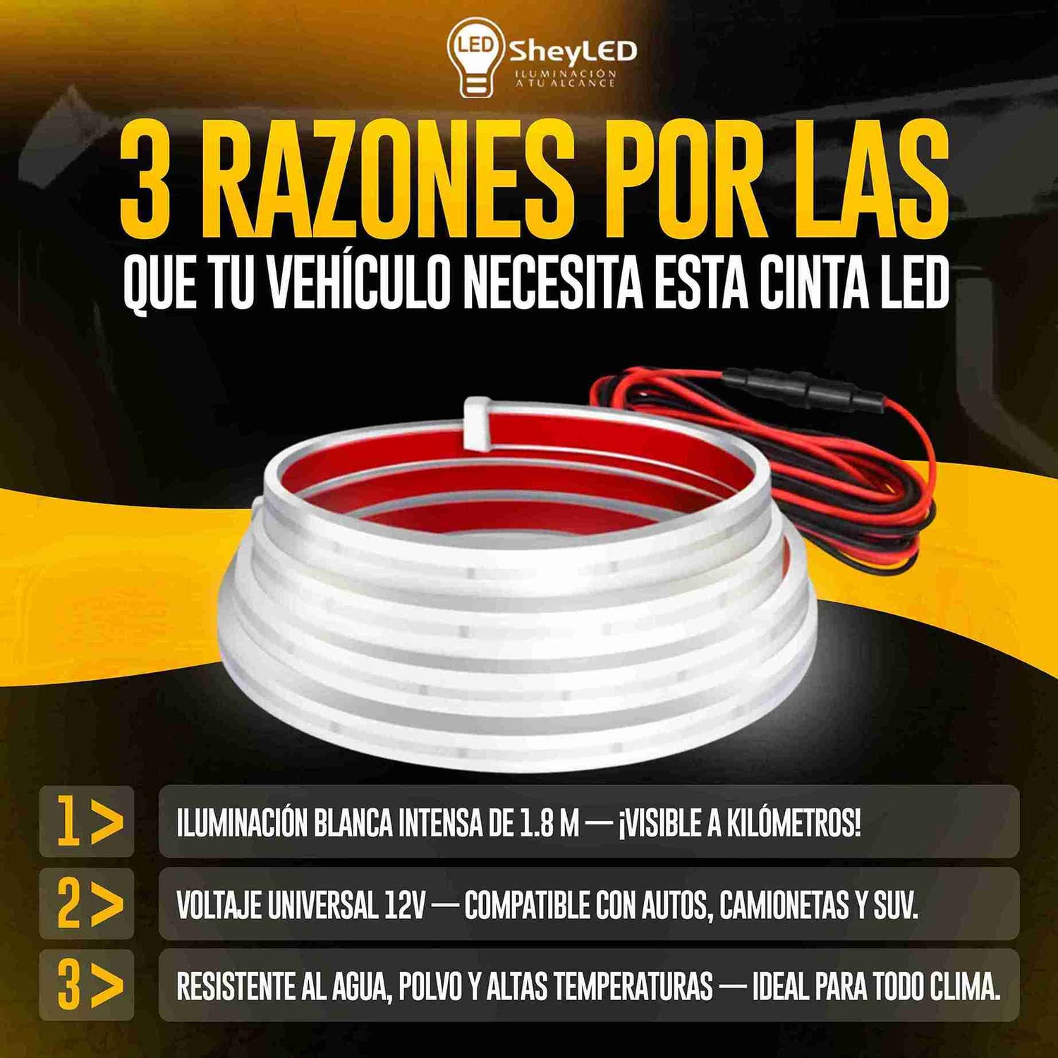 La Cinta LED SheyLED™ transforma tu vehículo con estilo y seguridad, brindando una visibilidad imponente tanto de día como de noche. Este producto combina 4 ventajas fundamentales: